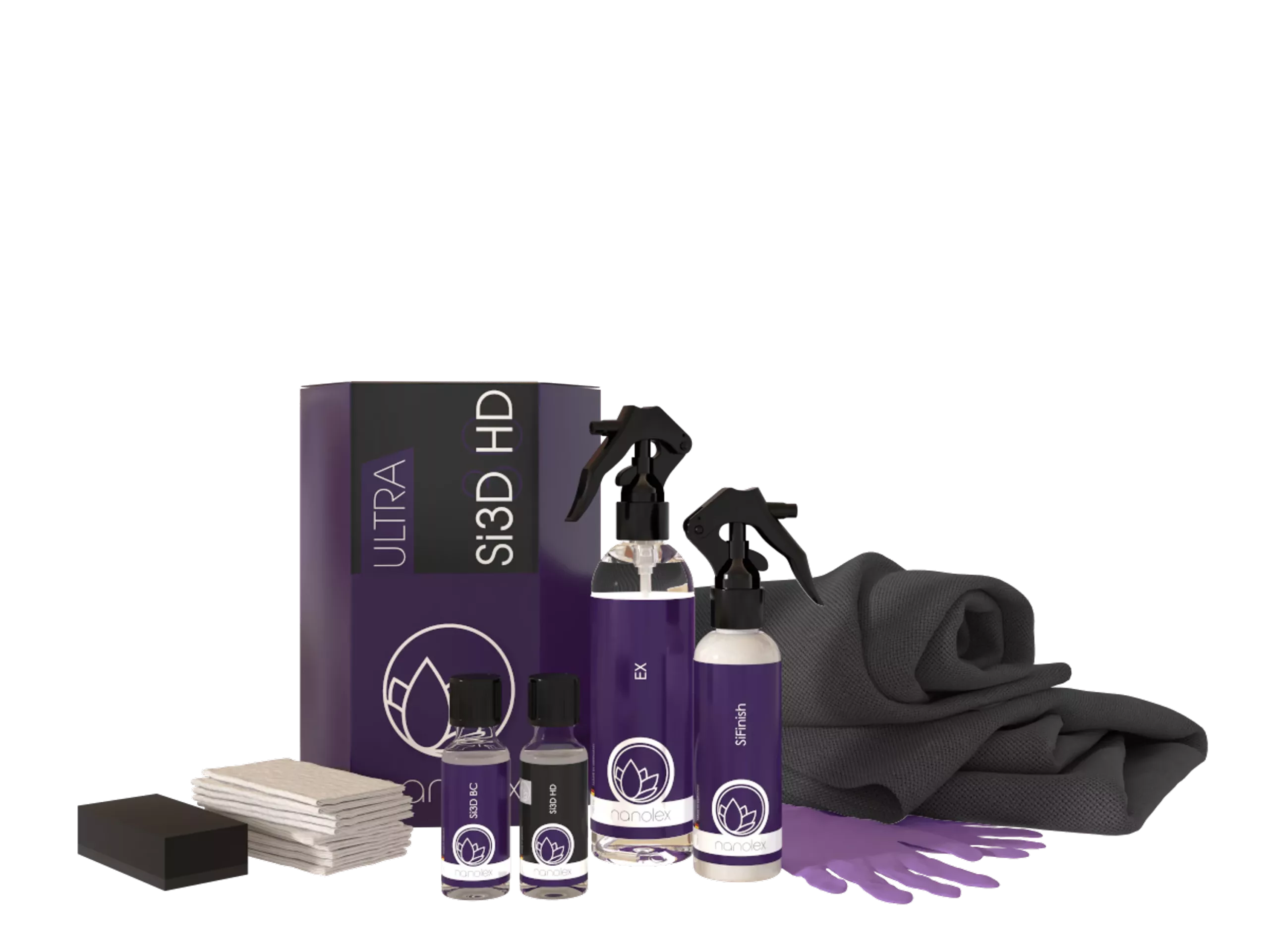 Παρέχοντας όλα όσα χρειάζεστε για να παρέχετε τις πιο επαγγελματικές εφαρμογές κεραμικής επίστρωσης Nanolex, το Si3D HD Ultra Set διατίθεται στην επιλογή σας με επιστρώσεις 30ml , μαζί με την πλήρη συσκευασία αξεσουάρ Nanolex.